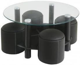 Table Basse Avec 4 Poufs Encastrables Miami Noire Amazon Fr