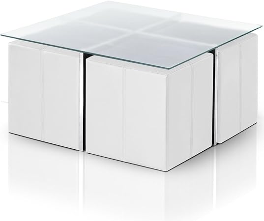 Table Basse Avec 6 Poufs Encastrables Miranda Blanc Amazon Fr