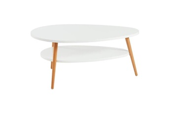 Table Basse Ovale Scandinave Avec Plateau En Bois Laquee Blanc By A