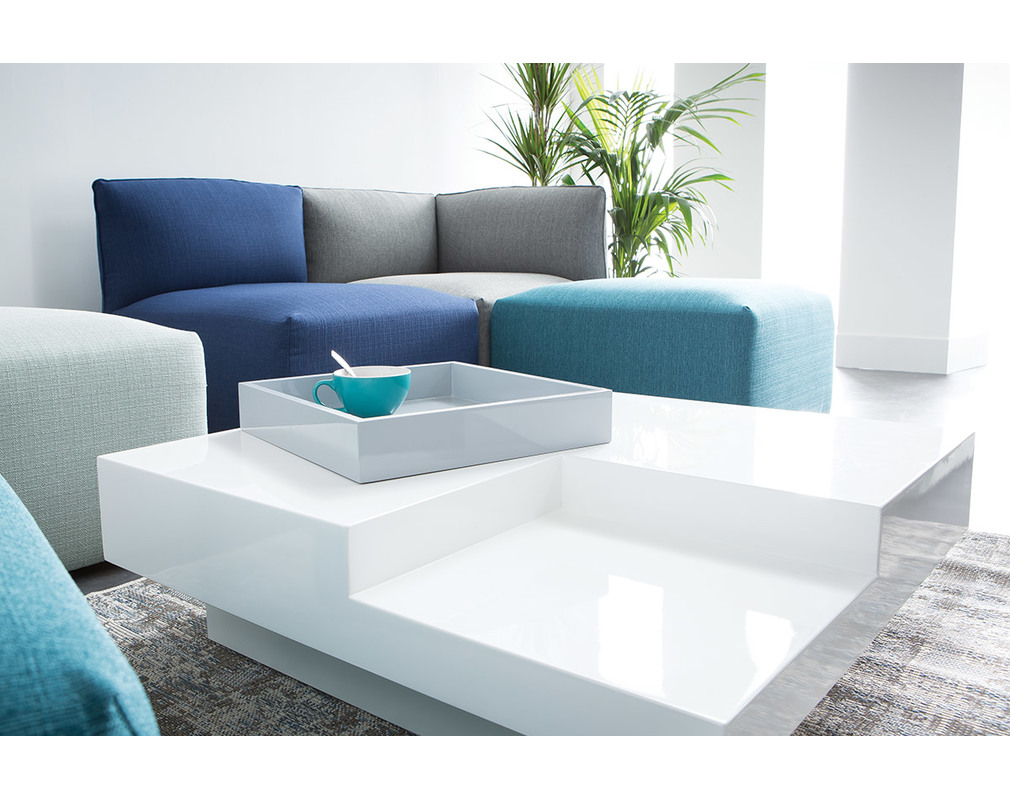 Table Basse Design Laquee Blanche Plateau Gris Amovible Teena