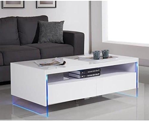 Table Basse Fabio Mdf Laque Blanc Leds 2 Tiroirs