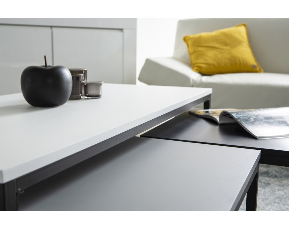 Tables Basses Gigognes Noir Gris Et Blanc Laques Mates Avec Pieds